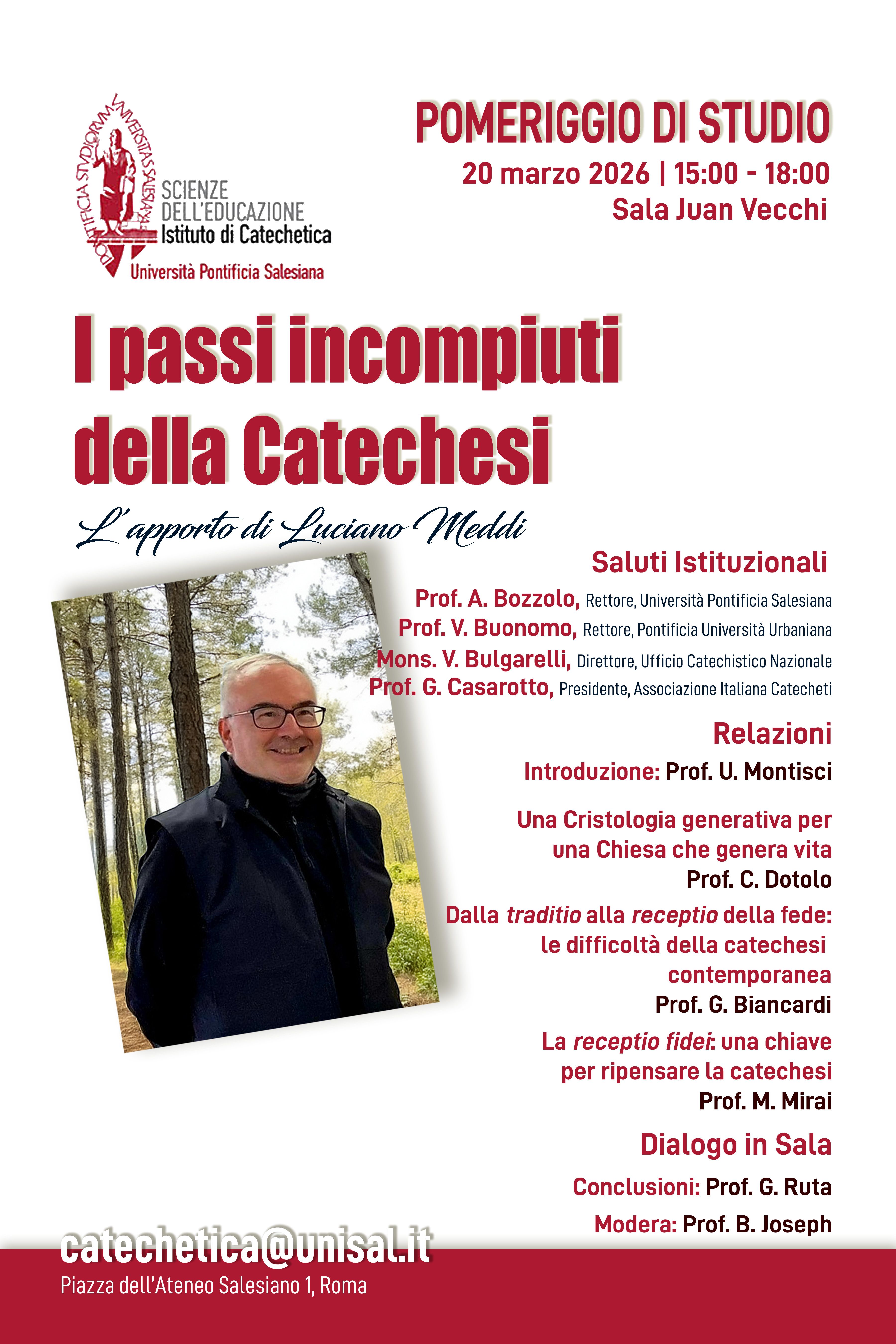 L’Istituto di Catechetica organizza un pomeriggio di studio nel ricordo del prof. Luciano Meddi, recentemente scomparso. Il catecheta romano, Ordinario di catechetica presso la Facoltà di Missiologia della Pontificia Università Urbaniana di Roma, insegnava da numerosi anni anche presso la nostra Facoltà di Scienze dell’Educazione, di cui era ex allievo.